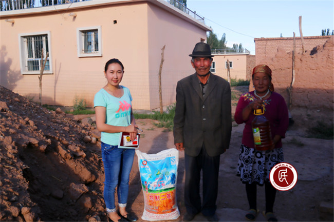 (图为乡干部吉帕尔古丽·麦麦提居马(左一)慰问贫困户)