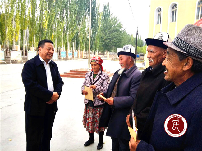 新疆民生网讯 9月10日,在“古尔邦”节和中秋节即将来临之际,自治区煤炭工业管理局、新疆煤矿安全监察局党组副书记、局长吴甲春率领局机关相关处室的同志,冒着大雨和冰雹,来到位于中吉边境线山区乌恰县托云乡对口扶贫苏约克村和局所在住村工作组的巴音库鲁提乡巴音库鲁提村和克孜勒阿根村,专程看望慰问了15户四老人员、宗教人士、贫困户及致富带头人,给15户村民每户发放了500元节日慰问金,并分别召开了座谈会,同时也给当地群众和住村工作组的同志送上了节日的祝福和诚挚的问候,使他们深切感受到了党组织的温暖和关怀。