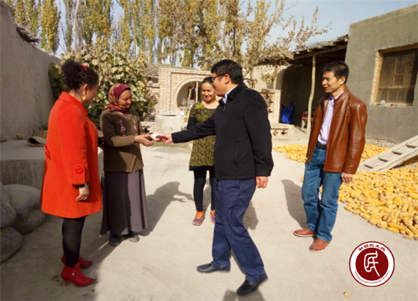 阿克陶县委常委、副县长徐俊以及乡党委书记顾政龙和亲戚们拉家常并亲切的关心他们,深入了解其家庭基本情况,耐心细致的讲解脱贫致富的方式方法,还给他们送去慰问金、大米、清油和面粉等慰问品。