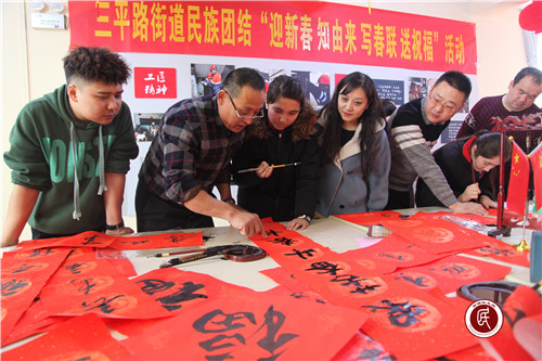 本次活动是三平路街道迎接新春佳节“民族团结一家亲•融情聚力中国年”系列主题活动的一部分,三平路街道党工委将融情活动与城市基层党建有机结合,将居民需求与辖区资源有效链接,找准突破口、找准切合点,组织策划了系列主题活动。今天的“迎新春、知由来、写春联、送祝福”活动彰显了三平路街道党工委的凝聚力和号召力,同时也进一步强化了辖区各族干部群众中华民族共同体意识,也让干部群众在寒冷的冬日里感受到了浓浓的关怀和街道大家庭的温暖。