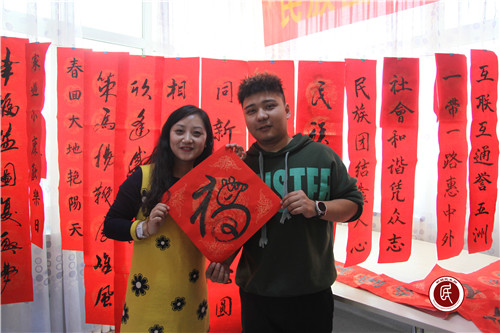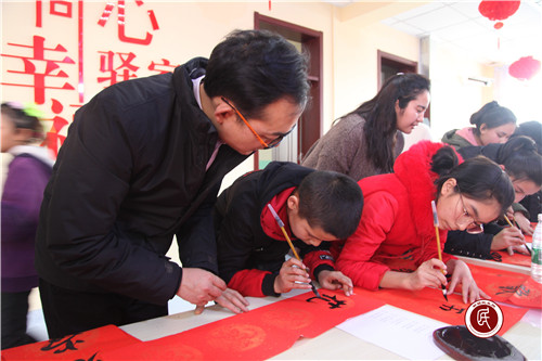 新疆民生网(陈泽赢)1月27日下午,三平路街道同心驿家活动室里热闹非凡,在同心大讲堂里,50余对结对亲戚围坐在街道党群服务中心宣讲员张晓身边,听着张晓讲新春佳节的故事,在她身后的“微心愿”墙格外吸引人,象征平安和谐的绿色微心愿墙贴满了结亲亲戚们的美好心愿。在翰墨苑,来自大工委成员单位第十中学、第十六小学的师生们带着辖区居民一笔一划写着春联、写下“福”字,一幅幅喜庆、寓意深刻的春联和一个个饱含热情、具有浓浓年味的“福”字跃然纸上。长长的书案被围得严严实实,“这和以前在街上买的不一样,这可是党和政府送来的‘福’字,有了这个‘福’,我相信明年的生活一定会更加幸福美满。”来自五新社区的居民孔令兰说。短短一个小时,师生们写好了300多幅春联,很多春联作品还未等墨迹干透就已经被居民领走。