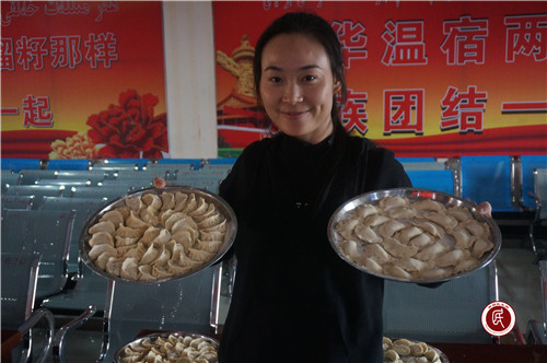下午16时,“百人包饺子”活动正式开始。工作队员和结亲干部齐上阵,纷纷亮出自己的“绝活”,村里的妇女纷纷观摩学习。“看不出来,工作队清一色的男队员,包饺子居然都这么厉害,和我们家里的男人不一样。”妇女们紧随其后也拿起擀面杖和擀好的饺子皮,民族特色饺子包起来。“现在农村妇女同样可以打工就业,男人们不但要能挣钱养家还要会干家务,才是模范丈夫,这个观念一定要转变……”驻村干部们一边包着饺子,一边宣传起现代农村生活新风尚,原本还背着手看热闹的汉子们禁不住这么一说,也主动加入,有样学样,大家干在一起,乐在一起。