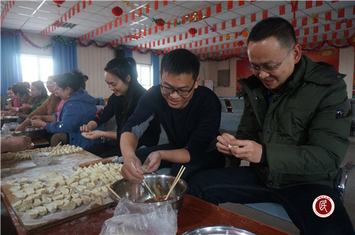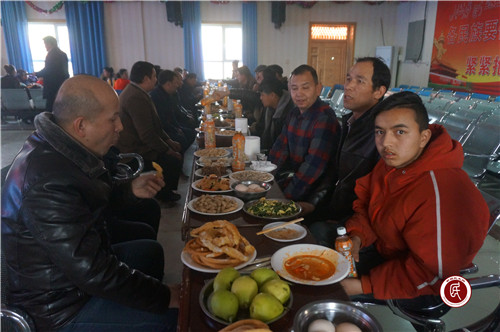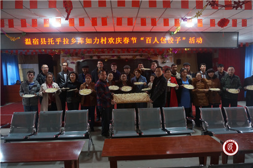 新疆民生网(陈晓恺)2月4日,自治区地矿局驻阿克苏地区温宿县托乎拉乡库如力村“访惠聚”工作队全体队员与村干部、妇女代表、村民代表和结亲干部欢聚一堂,共同庆贺2019年春节的到来,相继举行“百人包饺子”活动和同看春晚、同吃年夜饭、共度春节大联欢活动。
