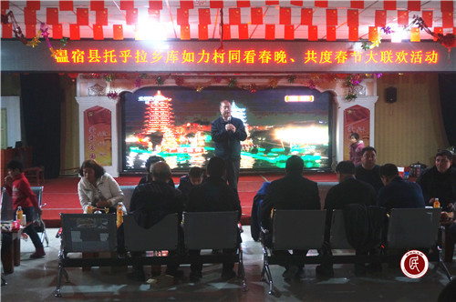 热腾腾的饺子出锅了,妇女们呈上自家准备好的菜肴,一顿丰盛的年夜饭准备就绪,随着2019年春节联欢晚会的播出,库如力村同看春晚、同吃年夜饭、共度春节大联欢活动也拉开序幕。大家围坐在一起、一边享用美食,一边观看精彩的文化节目,一边为身边亲朋好友送出祝福,欢声笑语,其乐融融。