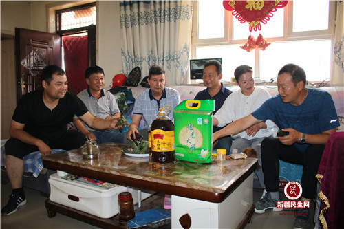 新疆民生网(艾则孜·沙木沙克 )6月6日,带着美味的粽子、大米、清油等慰问品,在温宿农村商业银行驻博然其村工作队副队长努尔艾合买提·沙依木同志的带领下,工作队全体人员一同前往艾尼瓦尔·阿不都热依木的结亲户李松年家庭,送去了节日的祝福和党的关怀。