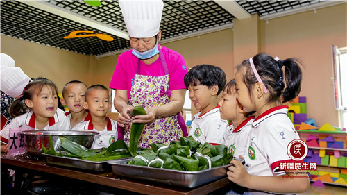 新疆民生网(杨斌 景泓渤)端午是我国传统的节日之一,为了让孩子们学习和了解端午节的文化内涵与精彩丰富的节日习俗,6月6日上午,昌吉市第一幼儿园开展“浓浓棕香飘园 深深情谊系千家”三进两联一交友联谊活动。全体教职工、小朋友、结亲对象及家长代表举行包棕子比赛,一起包粽子、过端午,感受传统文化。