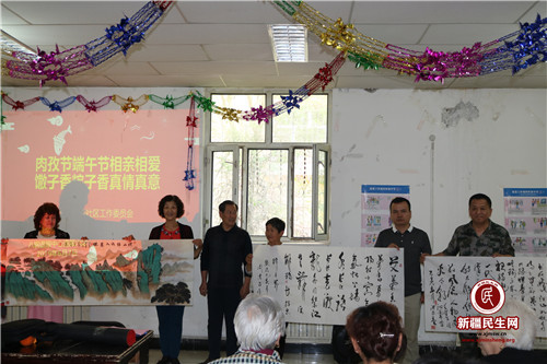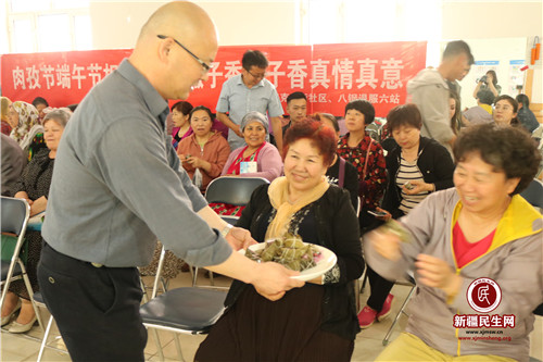 据了解,社区帮扶单位乌鲁木齐市水务局向各族居民赠送了纸巾、脚垫等纪念品,社区还准备了热腾腾的粽子,以及香囊、五彩绳等端午节特有的礼品馈赠给各族居民。