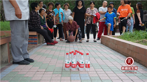 晚上20:30时,楼寓趣味活动正式开始,100余位各族居民齐聚一堂,参加幸福社区的传统楼寓项目,拔河、保龄球、跳绳三个传统活动项目引来全体居民围观参与。团体项目拔河比赛激发了全场的热情,各族居民按照楼寓划分为不同队伍,相互角逐,相互比拼,呐喊声、加油助威声此起彼伏。