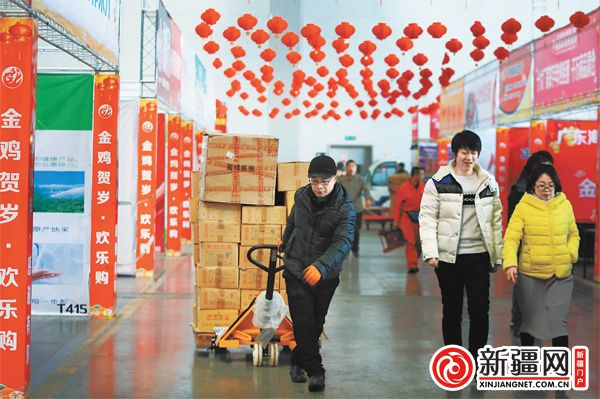 新疆网讯(记者张利民摄) 1 月3 日,在新疆国际会展中心,参加2017 年“第十届中国·新疆新春年货博览会”的参展商正在布置展位。