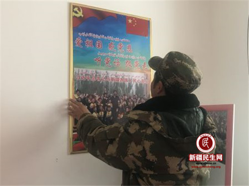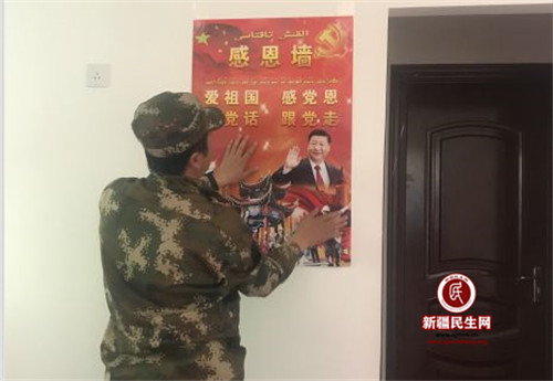 新疆民生网(沈梦如)为了进一步增强牧民的感恩意识,弘扬爱国主义精神和集体主义精神。乡党委、政府积极安排部署,组织全体干部和“访惠聚”工作队全体成员到牧民家张贴感恩海报。