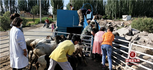 新疆民生网(石小权)6月12日上午,阿克陶县加马铁热克乡赛克孜艾日克村显得格外热闹。“走,快走,把羊拉到村委会,现在正组织给羊免费洗澡呢,去的晚了可能就洗不上了。”村民亚森·库尔班江一边赶着自家的羊一边对身边村民说。原来,村民说的给羊“洗澡”是赛克孜艾日克村2019年的药浴池项目,是专门给牲畜消毒用的,用来保障牲畜的生命安全。