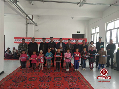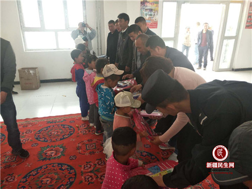白先拉力·艾米力吐尔地和村干部们给留守儿童孩子们送去了学习用品、水杯、书籍等礼物。