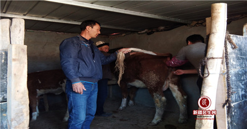 图为:给贫困户牛进行配种