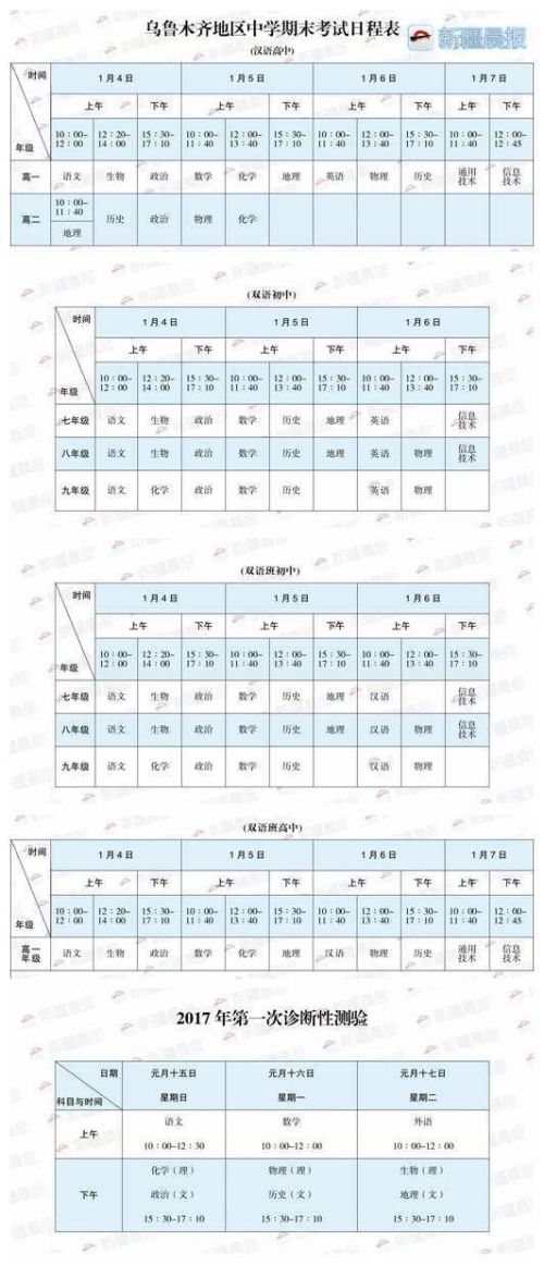 首页 >>便民利民 >>乌鲁木齐中学1月4日开始期末考试 这些科目开卷