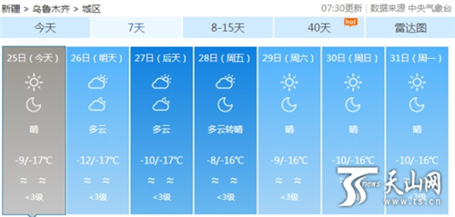 “往年乌鲁木齐市12月24日至25日的平均气温在-9℃至-10℃。今年气温与同期相比气温偏低是较为频繁的冷空气活动造成的。”新疆气象台服务首席窦新英介绍,本周全疆气温都较低,市民出行应注意保暖防寒。