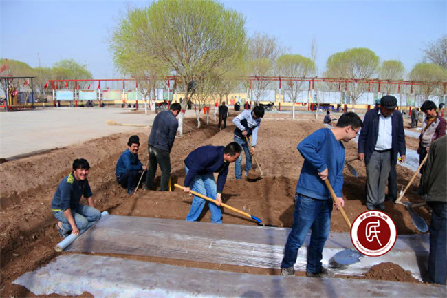 新疆民生网讯,春回大地,万物复苏,柳树抽出了嫩芽,杏花探出花骨朵,大地上每个角落都充满了春天的气息。3月24日,墩吕克村村委会院内一片繁忙景象,自治区地税局住伽师县和夏阿瓦提乡墩吕克村工作组和村两委正带领着村民一起拉线开沟,干的热火朝天。
