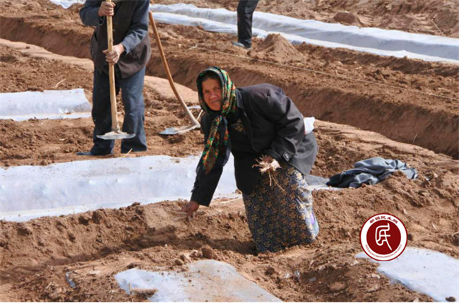 工作组、村两委带领村民开沟铺地膜