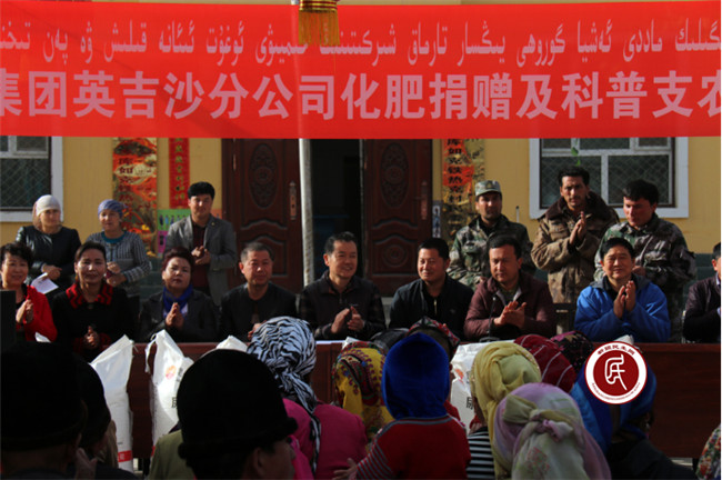 工作组组长向大家讲到:“新疆农资集团英吉沙分公司捐赠化肥代表自治区国有农资企业支持农民春耕生产和对农民朋友奉献一份爱心。英吉沙县农业技术推广站的专家来我村宣讲,是代表了英吉沙县党和政府对广大农民朋友的真切关心,并号召大家多多学习农业技术知识、科学种植农作物,提高搞好农业生产种植水平,把更多的精力投入到农业生产中,希望到了年底都有一个好收成,自觉抵制宗教极端化,珍惜当前的社会和谐和稳定,早日实现脱贫致富。