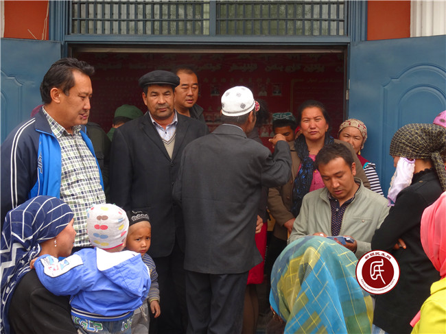 新疆民生网讯 4月21日,克州人社局住喀什艾日克村工作组在总领队努尔卡那提·艾木如拉的带领下,积极协调阿克陶县农业银行、村“两委”班子、乡劳保所工作人员为参加城乡居民养老保险的村民现场发放社会保障卡。