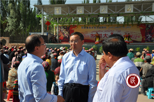 5月1日上午,张春林主任一行来到托普鲁克乡克力皮群村,在托普鲁克乡党委书记康国臻和自治区发改委住英吉沙县托普鲁克乡克力皮群村工作组组长赵曦峰的陪同下实地察看了村民文化广场、文化长廊、群众活动中心、村卫生室、村警务室及村委会办公场所,详细了解了各项村级设施的规划建设和使用情况,特别是道路、防渗渠等惠民工程的实施情况。在“三个讲堂”(道德讲堂、法律讲堂、科技讲堂)前,张春林主任仔细听取了工作人员关于讲堂文化宣传工作的汇报,肯定了讲堂在正信挤压方面发挥的积极作用。面对讲堂下的群众,他动情地说道:“我本身也是农民的儿子,通过努力学习和奋斗改变了自身的命运。这个讲堂办得很好,可以引导大家走上正确的道路,希望大家积极努力奋斗,改善自己的生活。”接着,张春林主任观看了百姓大舞台上阿娜尔文艺队的精彩演出,村委会主任阿卜杜卡德尔介绍了阿娜尔文艺队在工作组和村班子的关心和帮助下从无到有、一步步发展壮大的过程,以及主创人员精心编排的各种弘扬爱国敬业、尊老爱幼等中华民族传统美德的优秀节目。张春林主任高度赞扬了村班子和文艺队成员在引领现代文化、弘扬主旋律和正能量方面发挥的积极作用,并对村级文化宣传阵地建设给予了充分肯定。赵曦峰组长向张春林主任汇报了工作组围绕“三项重点工作”统领“六项任务”,扎实推进2016年“访惠聚”工作开展的情况,特别是和村“两委”班子密切配合做好基层阵地建设的情况。