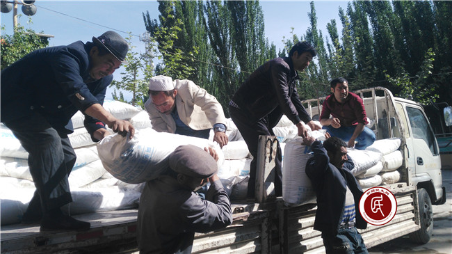 帮村民卸面粉