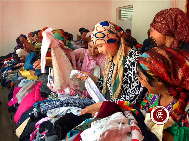 阔苏拉村村民很开心地选取衣服