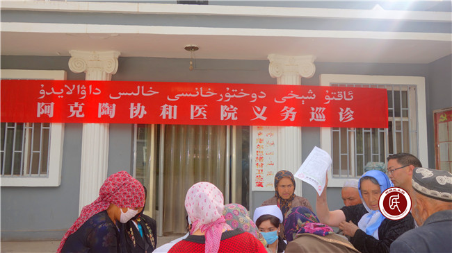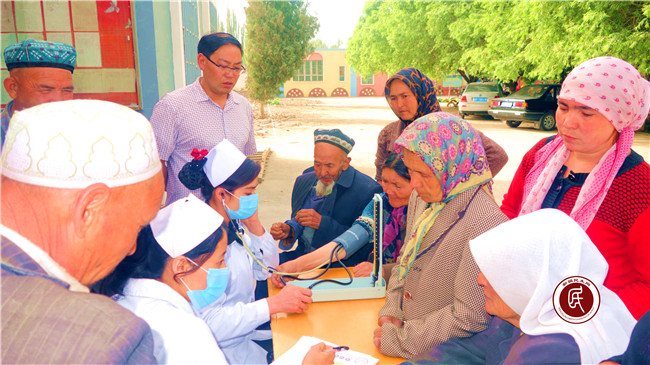 新疆民生网讯(通讯员 艾依塔吉) 5月23日,阿克陶县人社局住玉麦乡库尔巴格村“访惠聚”活动工作组在组长闫景来的带领下,协助阿克陶县协和医院医务人员为村民免费体检,工作组精心组织、积极参与此次活动,用自己的汗水换来了村民的笑容。