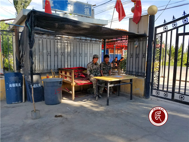 新疆民生网讯 (通讯员 杨萌)长期以来,住在英吉沙县托普鲁克乡克力坪兰干村村委会的12名值勤民兵,由于繁重的维稳任务,工作生活条件非常艰苦,一般几天都无法回家一次,特别是遇到沙尘、暴风、雨雪等恶劣天气,早晚还必须坚守在村委会大门口,做好安保值班、巡逻工作。每到深夜,两个民兵挤在村委会大门口的一张单人床上露天值班、守夜,无论天气多么酷热严寒。