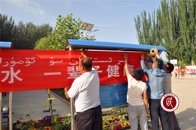 村民和工作组一起布置活动场地