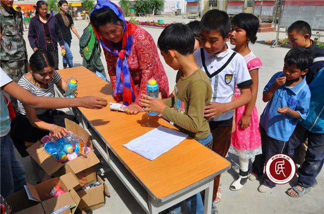 举办趣味运动会期间还设置了以“一杯子好水、一辈子健康”为主题的小学生爱心水杯赠送活动,“为了六一儿童节到来期间筹备这个爱心水杯捐助活动,国开行住村工作组从微信平台爱心水杯捐助募集开始,已经准备了两个多星期了,今天终于可以把来自全国各地的爱心人士的爱心水杯发给小朋友了,希望他们从此养成良好的引水习惯,更加健康的生活。”工作组组长尚强说。