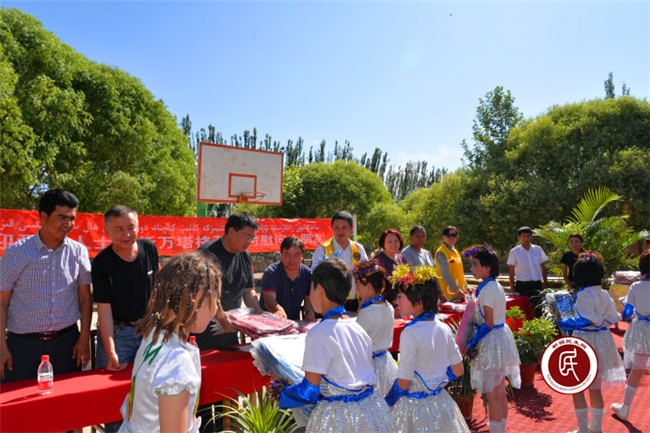 儿童是祖国的未来,托万塔格瓦孜村小学孩子们的身心健康,一直是自治区发改委工作组成员们心中的牵挂。当得知自治区妇女儿童发展基金会、广州狮子会及六家企业正在喀什地区举办慈善捐赠活动时,工作组立即与负责人乌兰树川取得联系,最终确定在托万塔格瓦孜村举办一场慈善捐赠活动,为孩子们捐赠200个书包。于是200个书包便昼夜兼程,经广州飞往喀什,在“六一”前送到了托万塔格瓦孜村孩子们的手中。