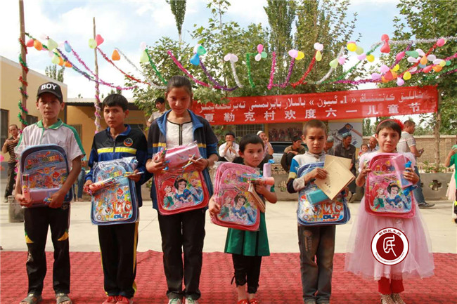 当天,自治区地税局住伽师县和夏阿瓦提乡夏勒克村第四工作组协助村委会组织开展了一场别开生面的“六一”儿童节活动。前来参加活动的儿童和家长们身着艳丽漂亮的艾德莱斯服饰,欢快的音乐响起来,麦西来甫跳起来,五颜六色的气球飘起来……村委会的大院里涌动着欢乐的热浪!汉语对话有奖问题,趣味游戏,孩子们都踊跃参加。工作组对评选出的村子里十户尊师重教家庭、十名优秀学生、十名双语成绩好的学生进行了奖励。