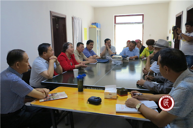 图:克州安监局、人防办、供销社工作组和村干部在开扶贫攻坚讨论会