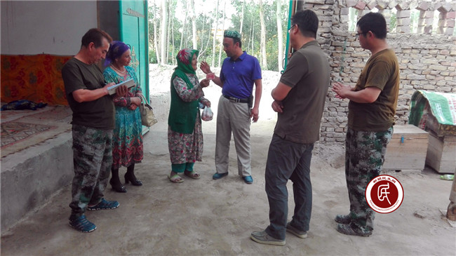 工作组当即决定资助这300元钱,并对其和家人耐心细致的讲解了国家和莎车县的有关政策。让工作组感动的是,当我们要离开时,其年迈的老母亲拖着并不敏捷的身躯快速跑进屋内,拿出了家里的两盘干果执意要让工作组成员们吃点儿再走,此时,拿着相机的我只觉得镜头瞬间模糊了,这是多么朴实的感激之情,而同时,这仅仅是我们最起码应该做的一点点小事而已啊。