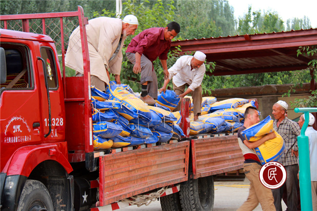 6月6日,工作组将新疆光大西域科技有限公司捐赠的10吨有机化肥运抵萨罕乡19村村委会大院,老乡们一个个高兴得合不拢嘴,他们用手抬,用肩扛,忙着搬运化肥。村干部和村民们带着敬意,流露着激动,干的热火朝天。