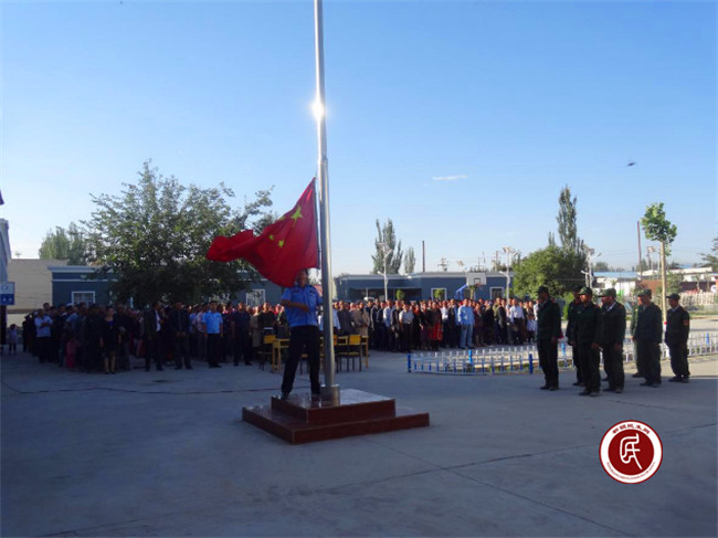 新疆民生网讯 6月20日清晨,克州人社局住9村工作组与村“两委”班子,组织村警、民兵、党员、“四老”人员、宗教人士及村民共720余人参加庄严的升旗仪式。伴随着雄壮的国歌声,一面鲜红的五星红旗迎着朝阳,在玉麦乡加依铁热克村冉冉升起,村民们精神饱满神地站在庄严的国旗下向国旗行注目礼。