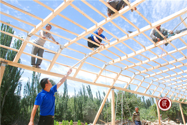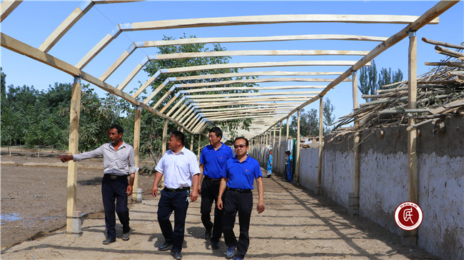 新疆民生网叶城讯(通讯员 徐金娟 黎立朝)近日,自治区煤田地质局住萨依巴格乡巴什欧尔达贝格村工作组出资40000余元在三个村民小组连片住宅屋后建立了木构葡萄长廊,既为村容村貌挣足了“面子”,又鼓起了村民的“钱袋子”。