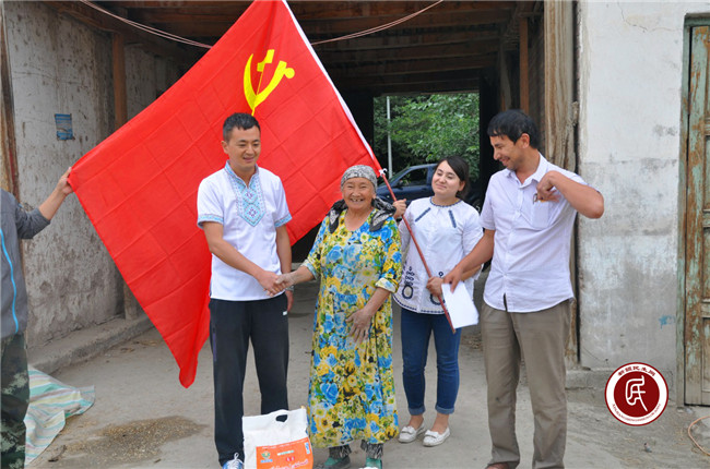 工作组与村干部慰问老党员阿提汗﹒胡达拜地