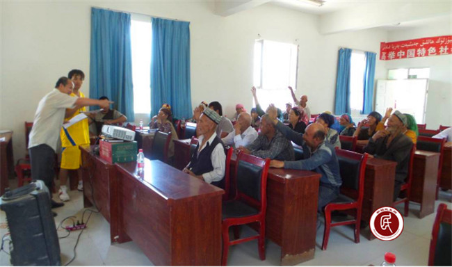 英吉沙县萨罕乡尤库日兰干村工作组开展党章党史宣讲,用维汉双语制作的幻灯片课件使每位党员对宣讲内容更加印象深刻。为了进一步加深这次党课宣讲的记忆,工作组紧接着组织了“建党知识有奖问答”活动,无论是老党员还是年轻党员都积极举手抢答,场面十分活跃,再一次巩固了对“两学一做”学习教育和党章党史有关内容学习的效果。