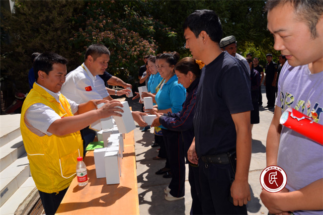 新疆民生网讯 (通讯员 杨安 吴铁城) 6月24日,一场特殊的慈善捐赠仪式在喀什地区英吉沙县萨罕乡人民政府举行,来自自治区妇女儿童发展基金会、亚心网、广东狮子会及六家企业的爱心人士,为乡、村干部,中、小学老师和派出所民警捐赠了300余个水杯和茶叶,同时为他们送去了社会各界的关心和祝福。