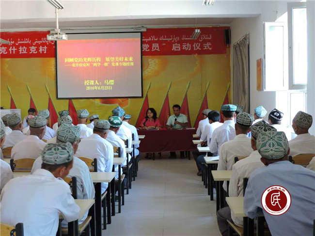 新疆民生网讯(通讯员 韩谢庆) 为深入开展克什拉克村“两学一做”学习教育系列活动。6月23日,自治区发展改革委住克什拉克村工作组组长、村党支部第一书记马缨为村全体党员干部们上了一堂内涵丰富、深刻生动的《回顾党的历史,展望美好未来》专题党课,进一步深化村全体党员思想认识,带领村党员深入领会“两学一做”学习教育精神内涵。这也是克什拉克村开展“两学一做”系列活动之三——自学习《党章》,学习系列讲话之后,由工作组组长讲党课。