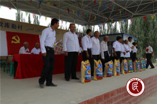 为鼓励党员们继续发扬艰苦奋斗、无私奉献的精神,为村集体的稳定、和谐和村民们脱贫致富贡献力量。宣誓活动结束后,村里的“四老人员”戴上了大红花,党员干部穿上了新衬衣,2800元慰问金、3台电视、40袋大米、4袋面粉、4桶清油分发给所有党员,体现了县、乡、村、工作组等各级党组织对党员们的关心、关怀。