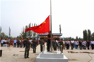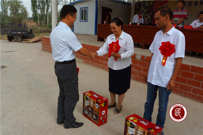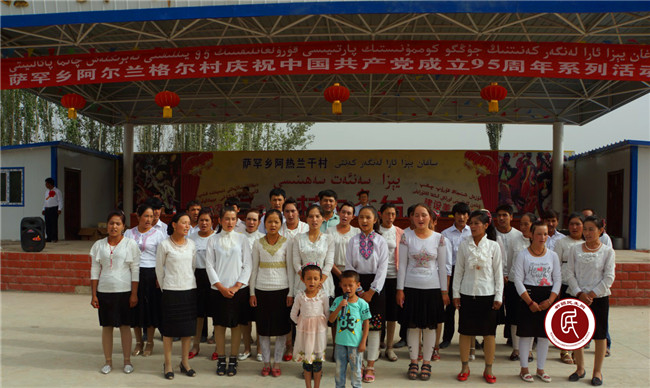 6月27日,随着国歌旋律的奏响,阿热兰干村的全体村民注目着冉冉升起的国旗,齐唱着庄严的国歌,拉开了萨罕乡阿热兰干村庆祝建党95周年活动的序幕。村里的全体党员在党旗前重温一次入党誓词,激励党员牢记党的宗旨和使命,时刻发挥先锋模范作用。随后对村里的优秀党员、优秀党务工作者、四老人员、困难党员进行了表彰和慰问。英吉沙县副县长吐逊江·肉孜在表彰中说:“今天我们欢聚一堂,共同表彰优秀的党员,你们为村里的稳定、发展、和谐作出了艰辛的努力,感谢你们!也希望各位党员始终保持共产党员的先进性,主动作为、团结奋斗,为村里的发展作出新的更大贡献!”。