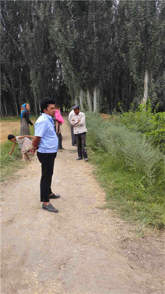 新疆民生网讯 (通讯员 艾依塔吉)2016年6月27日下午,阿克陶县人社局住玉麦乡库尔巴格村“访惠聚”工作组在组长闫景来的带领下,跟村村警、法院工作人员一同前往库尔巴格村5小组,化解了十村5小组村民肉孜·玉素甫跟达吾提·吾斯曼之间的土地纠纷,在工作组的妥善处理之下他们俩面带笑容成为好朋友。