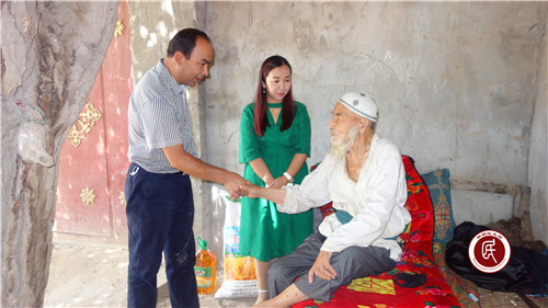 新疆民生网讯 (通讯员 艾依塔吉)在建党95周年、“肉孜节”来临之际,根据阿克陶县党委安排,结合脱贫攻坚工作,6月28日上午,阿克陶县人社局局长蒋洁、党组书记莫明江·买买提代表县人社局与村委会领导一起,采取上门走访、座谈、赠送慰问品(面粉、清油)等形式亲切慰问了玉麦乡库尔巴格村老党员、困难党员、向他们送上节日的问候。在慰问活动中,人社局领导共慰问了买丁·玉素甫等38名老党员、贫困党员,为他们送去价值共6800余元的慰问品(每人一袋面粉、一桶清油)。