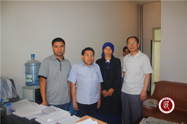 图:依夏古丽•阿西木和住村工作组干部专程来到县残联感谢给予帮助的艾尼瓦尔理事长并合影留念