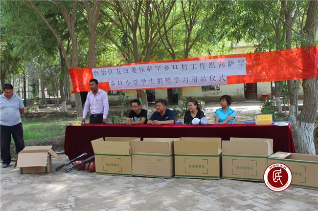 百年大计,教育为本。教育是立国之本,强国之基。工作组自住村以来主动联系,积极关注赛喀甫村小学的发展,在流感多发的季节,工作组来到学校走访慰问,送去了卫生消毒用品,并捐赠了现金让患流感严重的贫困孩子及时到医院接受治疗;当得知小学的教学楼新建项目还未开工,立即协调联系相关部门,促使项目开工建设;在儿童节来临之际,联合村两委为学校捐赠了价值数千元的爱心助学善款和相关物资,为贫困的学生购置相关的学习用品。