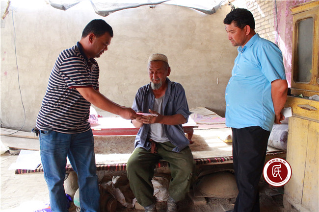 新疆民生网讯 (通讯员 杨琨)在中国共产党建党95周年到来之际,尉犁县教科局住墩阔坦乡米尔沙里村工作组及村两委班子一行到辖区13户老党员和生活困难党员家中进行走访慰问,为他们送去了慰问金、慰问品及节日的祝福。