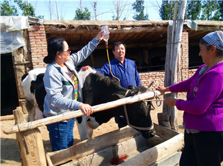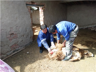 昌吉市庙尔沟乡阿克旗村是以哈萨克族为主,农牧结合的自然村,距离庙尔沟乡兽医站较远,牧民在养殖生产中常常遇到饲养管理问题以及牲畜突发疾病,常因兽医技术人员不能及时赶到而耽误病情,牲畜发生死亡,造成经济损失。自今年第三批“访惠聚”工作组2月25日住村以来,纳新,一名哈族兽医专业技术人员,利用语言优势为村民免费技术服务,解决畜牧养殖生产过程中疾病治疗、饲养管理和疫病防疫等技术问题。