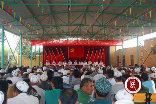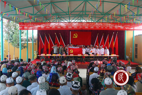 村支书麦麦提尼亚孜做大会主旨发言,对过去一年各项党建工作做总结,对优秀党员和党务工作者进行表彰,举行预备党员宣誓及老党员重温誓词仪式。